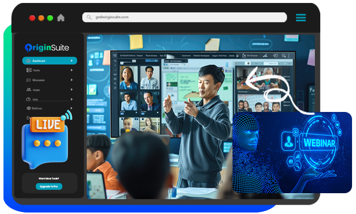 Host your own webinars right inside OriginSuite no extra software, no confusion. Go live or set it on autopilot.